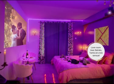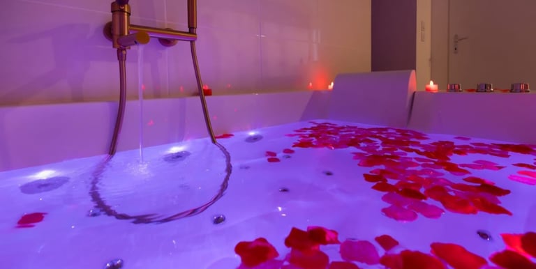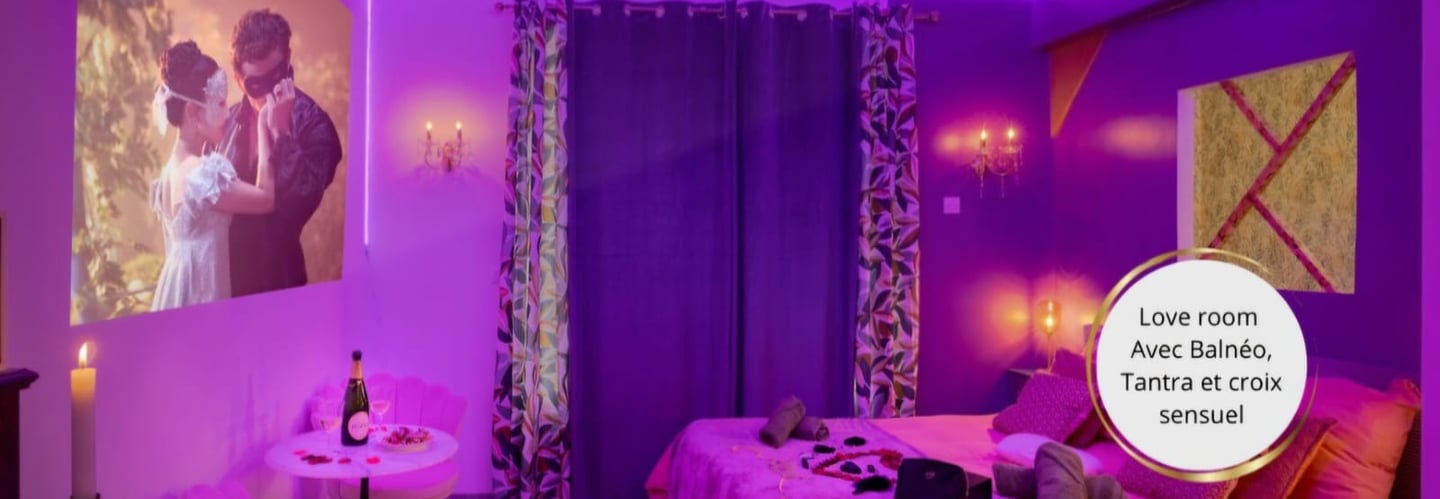 Plongez dans un décor raffiné, idéal pour des moments de complicité et de passion avec la balnéo privative idéal pour une parenthèse de douceur à deux.