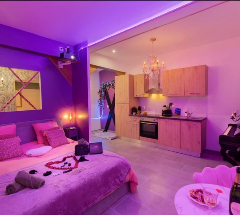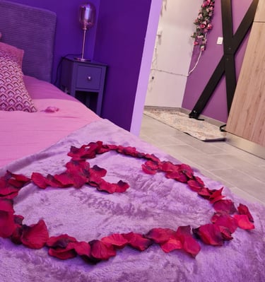 Découvrez notre suite inspirée par l'univers des Bridgerton, un espace raffiné pour des moments de passion et de complicité dans un cadre enchanteur et romantique. Plongez dans une ambiance envoûtante, où chaque détail est conçu pour créer une expérience unique, idéale pour une escapade romantique inoubliable à deux.